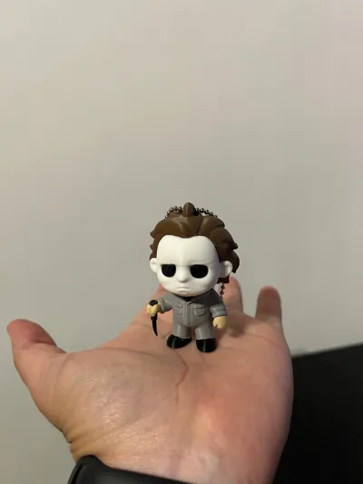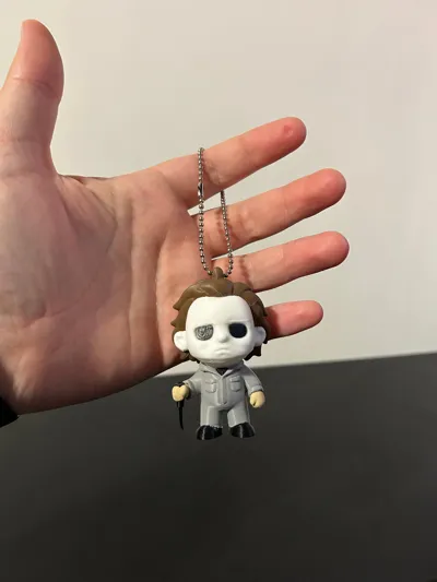 Apesar de pequeno, ele é cheio de detalhes: a máscara clássica, o cabelo despenteado e até uma minúscula faca na mão. Feito em impressão 3D resistente, ele é leve e não pesa no bolso, mas é durável o suficiente para o dia a dia.